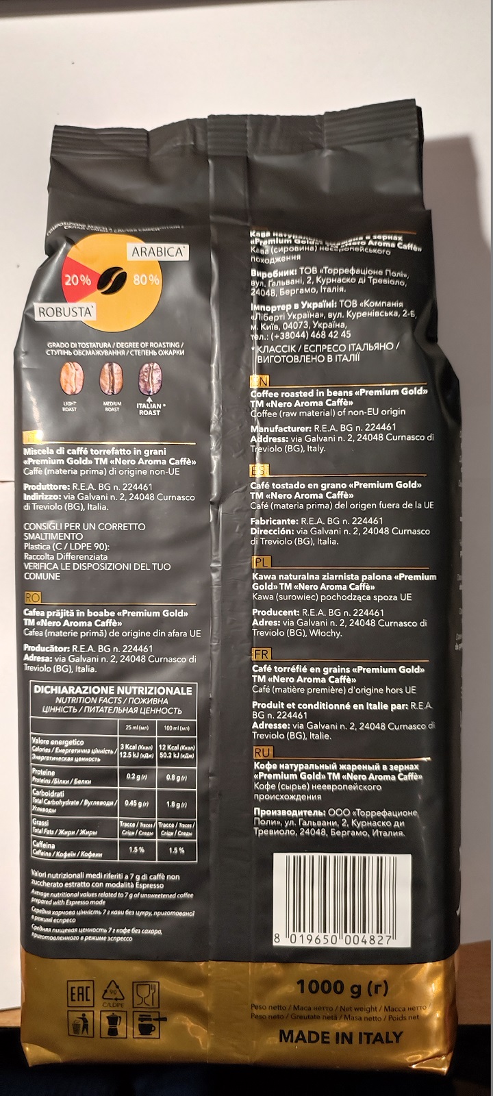 Nero Aroma Premium Gold 1 kg - кава в зернах (Код: N005)